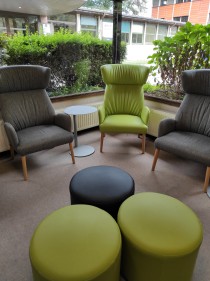 Fauteuils, chauffeuses, canapé, poufs et coussins géants sont autant de sièges confortables mis à votre disposition pour rendre votre séjour agréable.